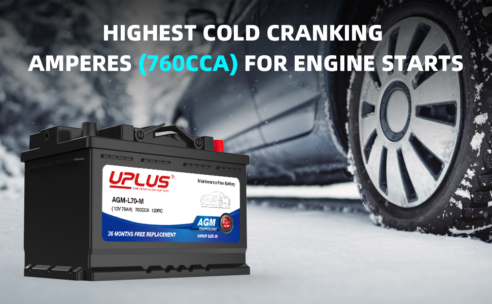 UPLUS H6 L3 BCI Group 48 Car/Automotive Premium AGM Maintenance Free Battery, 760CCA, 80RC [12V 70Ah]